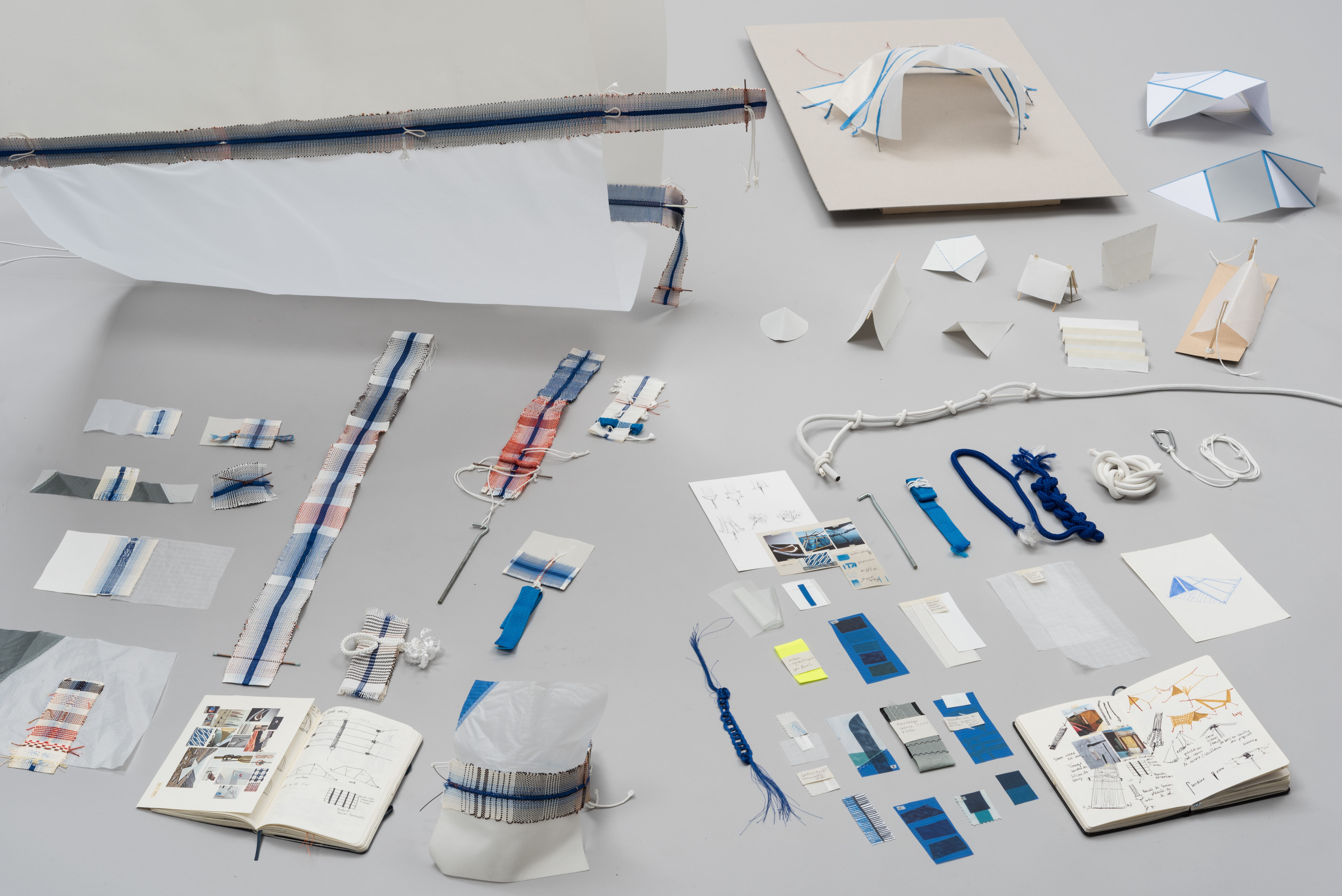 Colecting and analizing materials, design of a shape and of its use, inventing a new weaving technique, graphic and esthetic research.